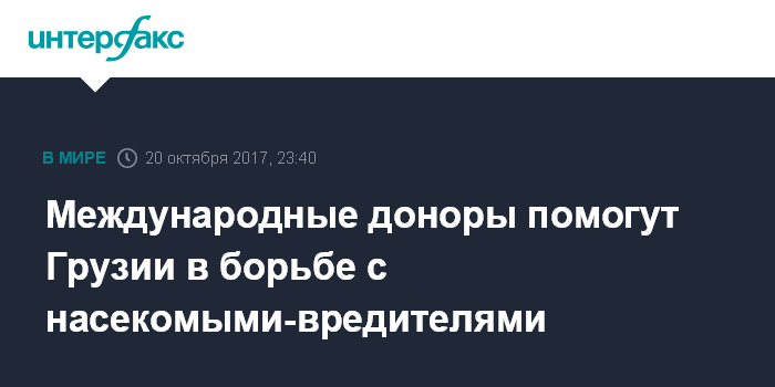 Москва. 20 октября. INTERFAX.RU - Международные донорские организации и финансовые институты готовы оказать Грузии помощь в борьбе с мраморными клопами (азиатские щитники), массовое нашествие которых в этом году создало серьезные проблемы жителям Западной Грузии. О том, в чем может выражаться эта помощь, шел разговор на состоявшейся в пятницу встрече министра сельского хозяйства Грузии Левана Давиташвили с представителями аккредитованных в стране международных донорских и финансовых институтов, на которой он ознакомил их со стратегией борьбы с этими насекомыми-вредителями.