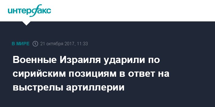 Москва. 21 октября. INTERFAX.RU - Израильская артиллерия в субботу обстреляла позиции сирийской армии после того, как несколько шальных снарядов с сирийской территории упали на контролируемой Израилем части Голанских высот.