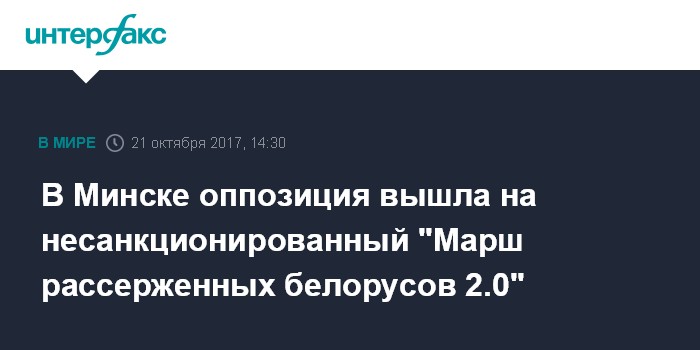 Москва. 21 октября. INTERFAX.RU - Несанкционированная акция оппозиции проходит в центре белорусской столицы в субботу. Ее инициатором стал оппозиционный политик, экс-кандидат в президенты кампании 2010 года Николай Статкевич. За пять дней до акции политик направил в Мингорисполком уведомление о намерении провести мероприятие.