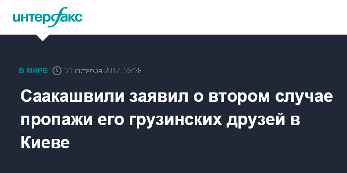 Москва. 21 октября. INTERFAX.RU - Лидер украинского движения "Рух новых сил" (РНС) Михаил Саакашвили заявил о том, что участились случаи пропаж его грузинских друзей в Киеве.