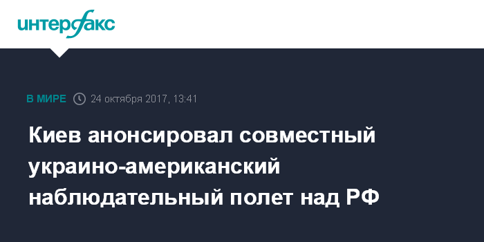 Москва. 24 октября. INTERFAX.RU - Украина и США намерены до конца года провести наблюдательный полет над территорией России с целью контроля военной деятельности.