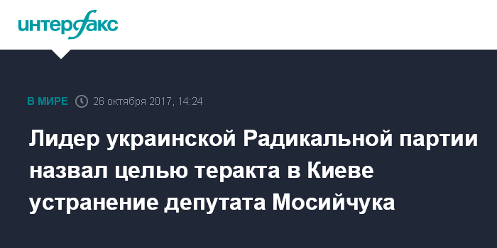 Лидер украинской Радикальной партии назвал целью теракта в Киеве устранение депутата Мосийчука