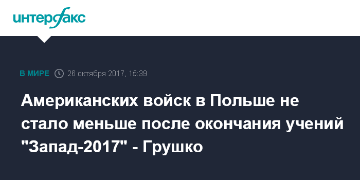 Американских войск в Польше не стало меньше после окончания учений "Запад-2017" - Грушко