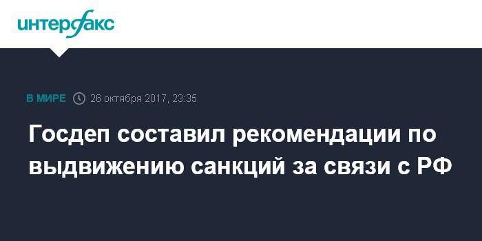 Госдеп составил рекомендации по выдвижению санкций за связи с РФ