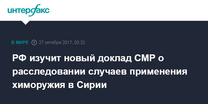 РФ изучит новый доклад СМР о расследовании случаев применения химоружия в Сирии