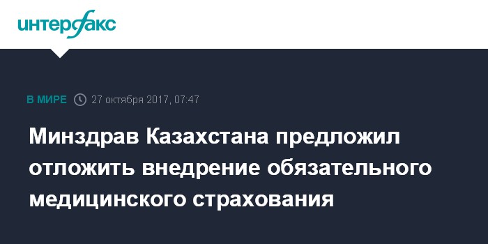 Минздрав Казахстана предложил отложить внедрение обязательного медицинского страхования