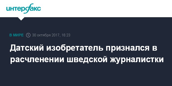 Москва. 30 октября. INTERFAX.RU - Датский изобретатель Петер Мадсен признался, что действительно расчленил тело шведской журналистки Ким Уолл, останки которой были найдены в нескольких сумках в территориальных водах Дании, сообщает Associated Press.