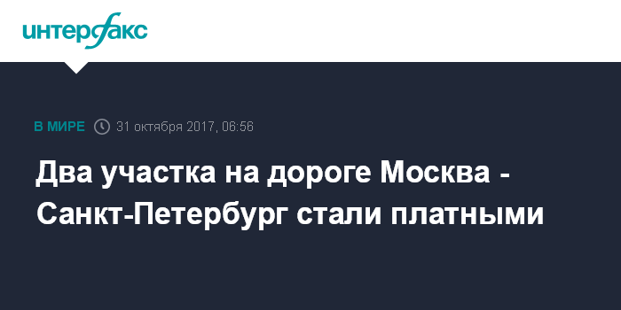 Москва. 31 октября. INTERFAX.RU - Премьер-министр РФ Дмитрий Медведев подписал распоряжение об использовании на платной основе двух участков автомобильной дороги М-11 Москва - Санкт-Петербург в Тверской и Новгородской областях, сообщает во вторник официальный сайт правительства России.