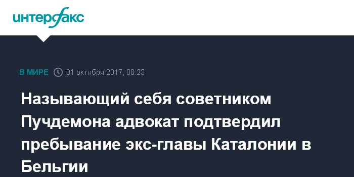 Москва. 31 октября. INTERFAX.RU - Вечером в понедельник бельгийские СМИ перешли на более утвердительный тон в сообщениях о пребывании в Бельгии бывшего главы женералитата Каталонии Карлеса Пучдемона.