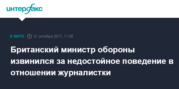 Британский министр обороны извинился за недостойное поведение в отношении журналистки