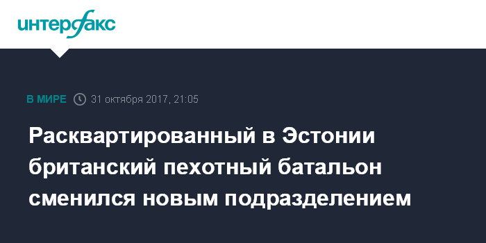 Москва. 31 октября. INTERFAX.RU - Военнослужащие Первого батальона британского пехотного полка "Королевские валлийцы" сменили британское подразделение тактических сил НАТО, дислоцированное в Эстонии, в военном городке Тапа.