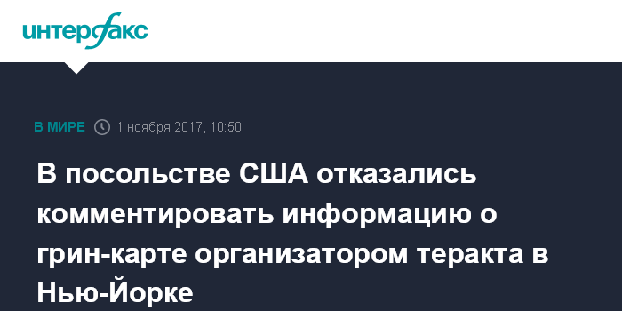 В посольстве США отказались комментировать информацию о грин-карте организатором теракта в Нью-Йорке
