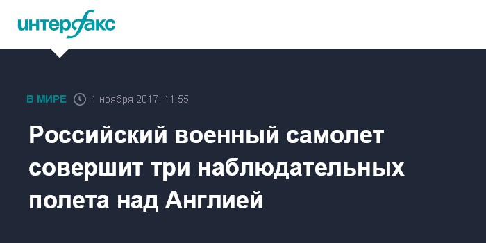 Российский военный самолет совершит три наблюдательных полета над Англией