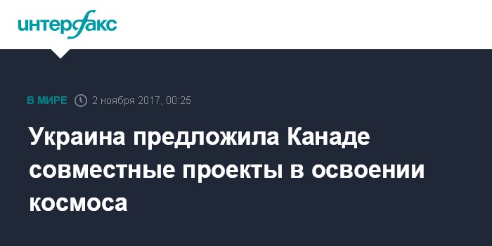 "Украина предлагает Канаде объединить усилия для реализации ряда проектов в аэрокосмической отрасли, в том числе по самолетостроению, строительству спутников и создание стартовой платформы для космических запусков", - цитирует Гройсмана пресс-служба Кабмина в среду вечером.