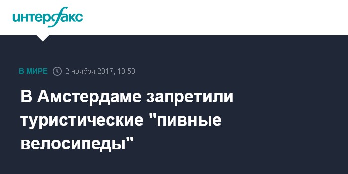 Москва. 2 ноября. INTERFAX.RU - Власти Амстердама запретили использование популярных у туристов "пивных велосипедов" - передвижных баров под управлением трезвых водителей - из-за жалоб местных жителей на шум и нарушения общественного порядка, сообщает "Би-би-си".