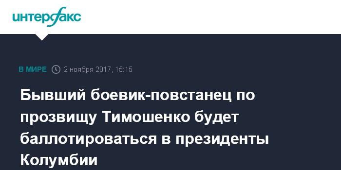 Бывший боевик-повстанец по прозвищу Тимошенко будет баллотироваться в президенты Колумбии