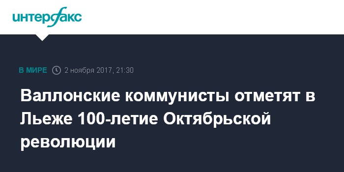 Москва. 2 ноября. INTERFAX.RU - Коммунисты из Льежа и других валлонских провинций Бельгии отметят 100-летие Октябрьской революции в форме коллоквиума в льежском университете, сообщил в четверг телеканал RTBF.