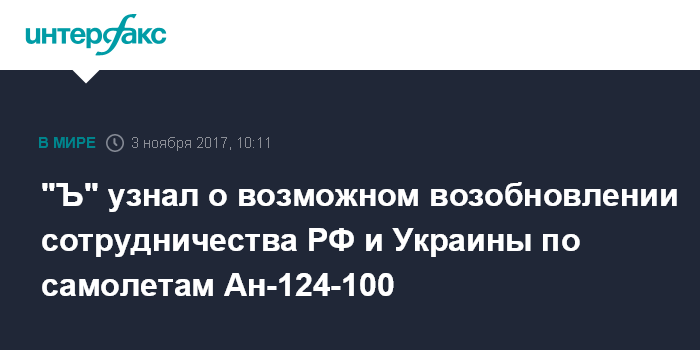 В публикации также отмечается, что в Объединенной авиастроительной корпорации (ОАК, в нее входит "Авиастар-СП") и Росавиации отказались от комментариев по этому вопросу. В министерстве промышленности и торговли РФ изданию сообщили, что не располагают информацией о возобновлении сотрудничества "Антонова" и "Авиастара-СП".