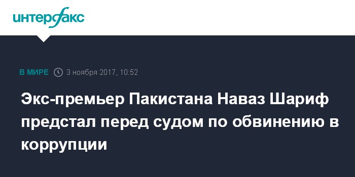 Москва. 3 ноября. INTERFAX.RU - Бывший премьер-министр Пакистана Наваз Шариф предстал перед судом в Пакистане по обвинению в коррупции, сообщает в пятницу агентство Associated Press.