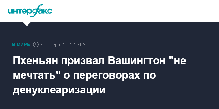 Москва. 4 ноября. INTERFAX.RU - Северная Корея исключила возможность переговоров по ее денкулеаризации и пригрозила увеличением ядерного арсенала перед азиатским турне президента США Дональда Трампа, говорится в сообщении, распространенном по каналам ЦТАК.