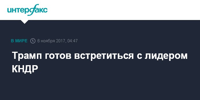 Москва. 6 ноября. INTERFAX.RU - Президент США Дональд Трамп заявил, что готов встретиться и провести переговоры с северокорейским лидером Ким Чен Ыном.