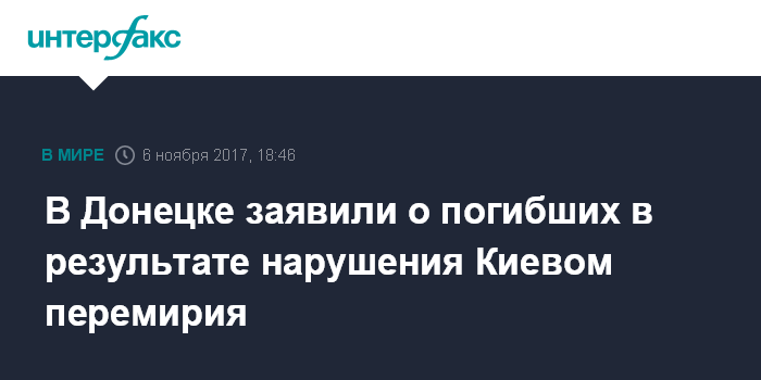 В Донецке заявили о погибших в результате нарушения Киевом перемирия