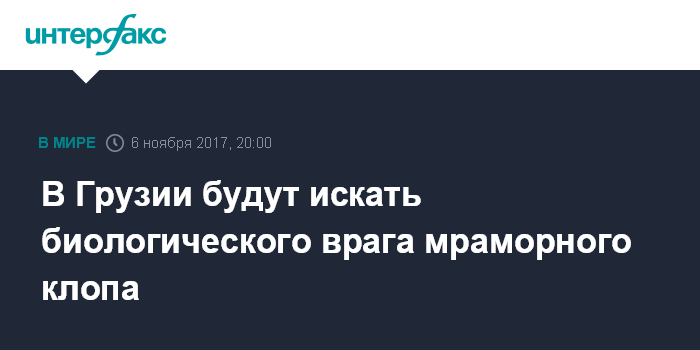 Москва. 6 ноября. INTERFAX.RU - В Грузии в поисках эффективных методов борьбы с массовым нашествием мраморных клопов (азиатские щитники), изучат возможность применения биологического метода для борьбы с этими насекомыми-вредителями.
