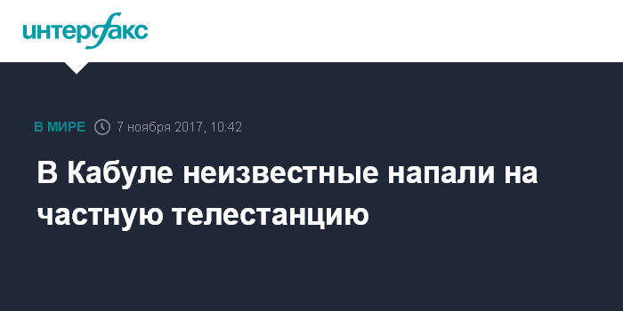 Москва. 7 ноября. INTERFAX.RU - Вооруженные неизвестные во вторник совершили нападение на частную спутниковую телевизионную станцию "Шамшад" в Кабуле, сообщает афганский телеканал ТОЛО.