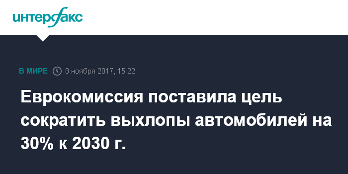 Москва. 8 ноября. INTERFAX.RU - Европейская комиссия (ЕК) намерена добиться от производителей сокращения выбросов вредных веществ в атмосферу на новых моделях автомобилей на 15% к 2025 году и на 30% к 2030 году. Об этом сообщает германский еженедельник Handelsblatt со ссылкой на источники.