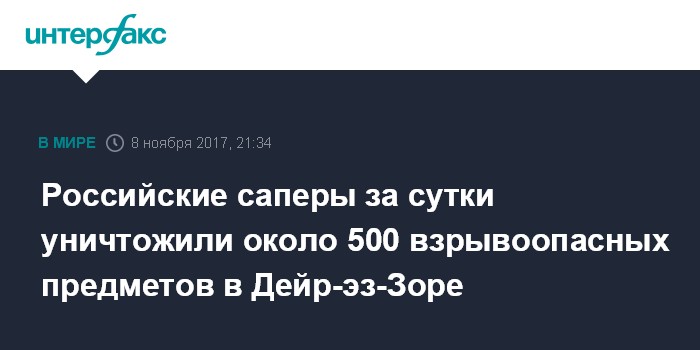 Российские саперы за сутки уничтожили около 500 взрывоопасных предметов в Дейр-эз-Зоре
