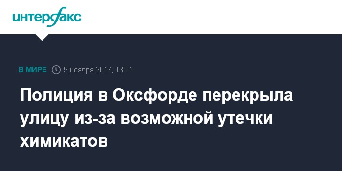 Москва. 9 ноября. INTERFAX.RU - Полиция в Оксфорде в четверг перекрыла одну из улиц из-за возможной утечки вредных химических веществ, сообщает газета The Daily Telegraph.