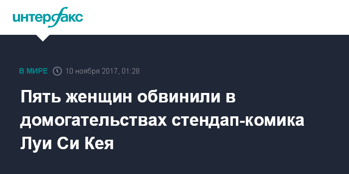 Москва. 10 ноября. INTERFAX.RU - Пять женщин обвинили известного американского стендап-комика Луи Си Кея в сексуальных домогательствах, пишет в четверг New York Times.