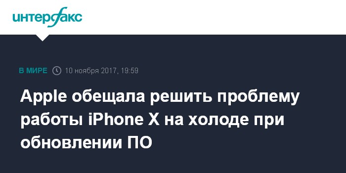 Москва. 10 ноября. INTERFAX.RU - Apple признала, что экран iPhone X плохо реагирует на холод: при температуре около нуля градусов с его работой возникают проблемы, сообщает dpa.