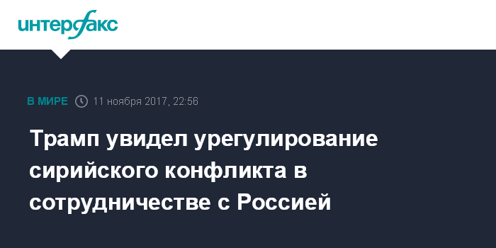 Москва. 11 ноября. INTERFAX.RU - Урегулирование конфликта в Сирии вместе с Россией позволит спасти большое количество жизней и, в конечном итоге, решить сирийский вопрос, заявил президент США Дональд Трамп.