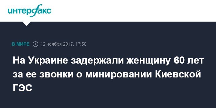Москва. 12 ноября. INTERFAX.RU - Полиция Киевской области задержала женщину, которая на протяжении трех недель регулярно сообщала о минировании Киевской гидроэлектростанции в городе Вышгород, сообщает отдел коммуникации полиции в Киевской области.