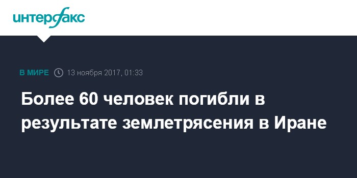 Москва. 13 ноября. INTERFAX.RU - Не менее 61 человек стали жертвами мощного землетрясения в Иране, сообщает в понедельник агентство Associated Press со ссылкой на иранские власти. Пострадали по меньшей мере 300 человек.