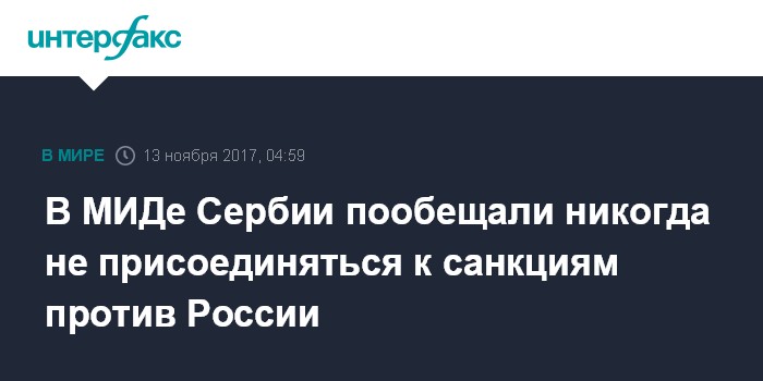 В МИДе Сербии пообещали никогда не присоединяться к санкциям против России
