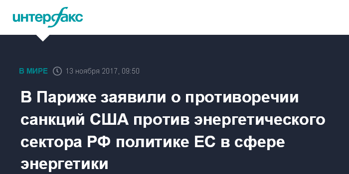 В Париже заявили о противоречии санкций США против энергетического сектора РФ политике ЕС в сфере энергетики
