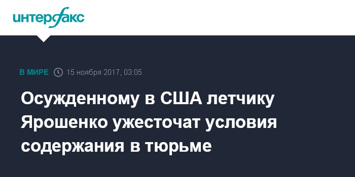 Осужденному в США летчику Ярошенко ужесточат условия содержания в тюрьме
