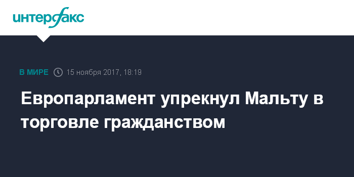 Депутаты Европарламента ставят под сомнение практику предоставления гражданства ЕС за денежное вознаграждение и предлагают Еврокомиссии следить за такими сделками. Правительство Мальты, настаивают европарламентарии, должно обеспечить полную транспарентность в отношении того, кто и как купил мальтийское гражданство, и гарантировать, что эти лица прожили на Мальте перед этим хотя бы год.