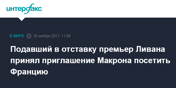 Москва. 16 ноября. INTERFAX.RU - Премьер-министр Ливана Саад Харири, ранее подавший в отставку, принял приглашение французского президента Эммануэля Макрона приехать во Францию, заявил в четверг глава французского МИД Жан-Ив Ле Дриан.