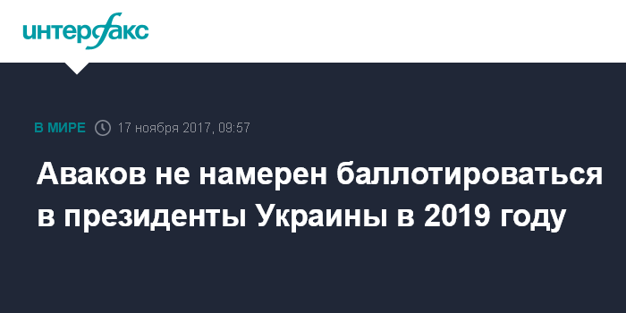 Москва. 17 ноября. INTERFAX.RU - Министр внутренних дел Украины Арсен Аваков заявляет, что у него нет президентских амбиций, но позднее он определится с кандидатурой, которую поддержит на президентских выборах.