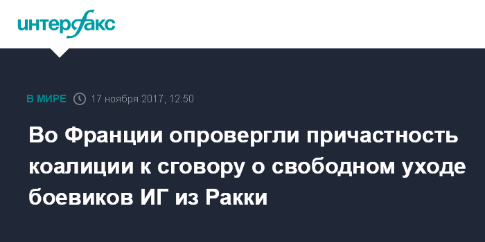 Во Франции опровергли причастность коалиции к сговору о свободном уходе боевиков ИГ из Ракки