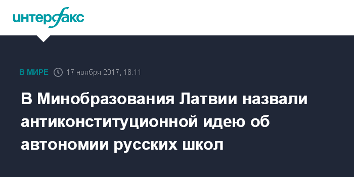 Москва. 17 ноября. INTERFAX.RU - Министр образования и науки Латвии Карлис Шадурскис назвал неконституционным предложение противников школьного образования на государственном языке обеспечить автономию русских школ.
