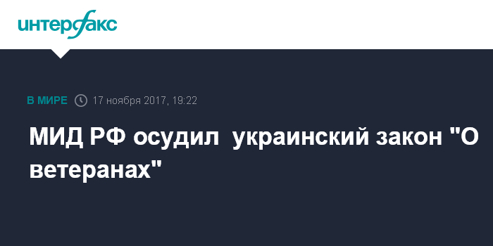Москва. 17 ноября. INTERFAX.RU - Поправки в закон о ветеранах на Украине - проявление неуважения и оскорбление памяти погибших во время Великой Отечественной войны, заявили в пятницу в МИД России.