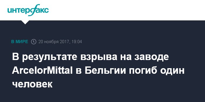 Москва. 20 ноября. INTERFAX.RU - Один человек и двое получили серьезные ранения в результате взрыва на территории завода металлургической компании ArcelorMittal вблизи бельгийского города Гент, сообщает телерадиокомпания VRT.