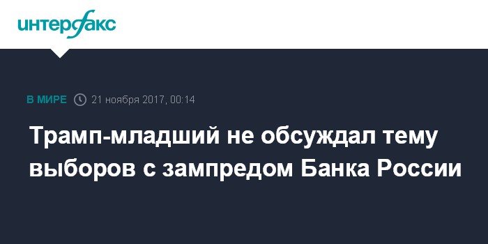 Трамп-младший не обсуждал тему выборов с зампредом Банка России