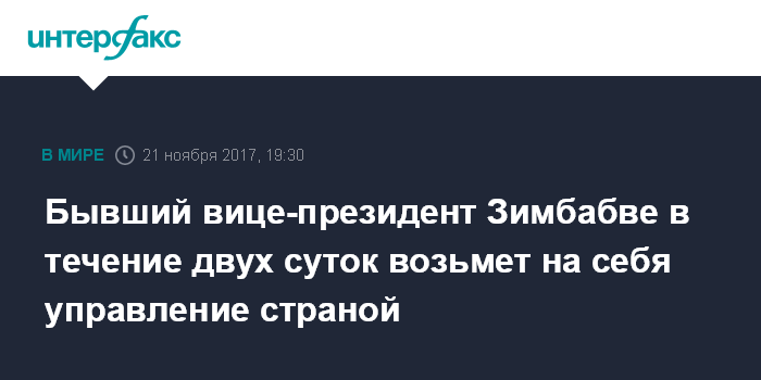 Бывший вице-президент Зимбабве в течение двух суток возьмет на себя управление страной