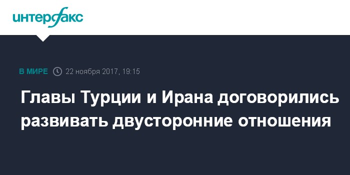 Москва. 22 ноября. INTERFAX.RU - Президент Турции Реджеп Тайип Эрдоган заявил, что договорился со своим иранским коллегой Хасаном Рухани всесторонне развивать двусторонние государственные отношения.