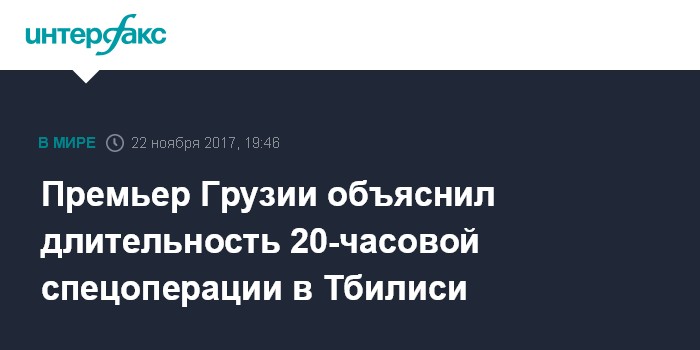 Москва. 22 ноября. INTERFAX.RU - Главной задачей спецоперации по нейтрализации террористов в Тбилиси была безопасность граждан, из-за чего нейтрализация подозреваемых заняла много времени, заявил премьер-министр Грузии Георгий Квирикашвили.